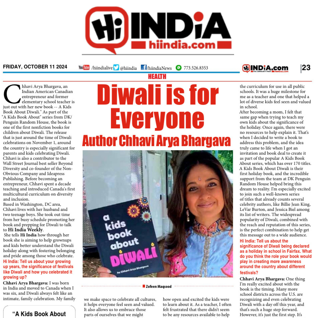 Her hope is that this book showcases some of the wonder and happiness in how families everywhere enjoy Diwali and promotes a feeling of belonging and pride among kids who already celebrate. Chhavi dreams of a future where Diwali can be recognized, appreciated, and understood by kids and grownups everywhere—no matter which holidays they celebrate.